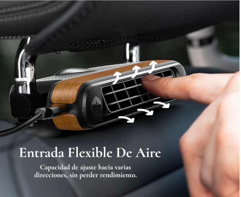 Como funciona? Lleva una brisa dirigida y silenciosa al asiento trasero desde el primer segundo, acelera el enfriamiento de todo el habitáculo y te permite mantener el A/C en un nivel moderado sin congelar a los de adelante. Es compacto, elegante y se integra como si viniera de fábrica, ocupando cero espacio en las piernas y sin obstruir la vista del conductor.